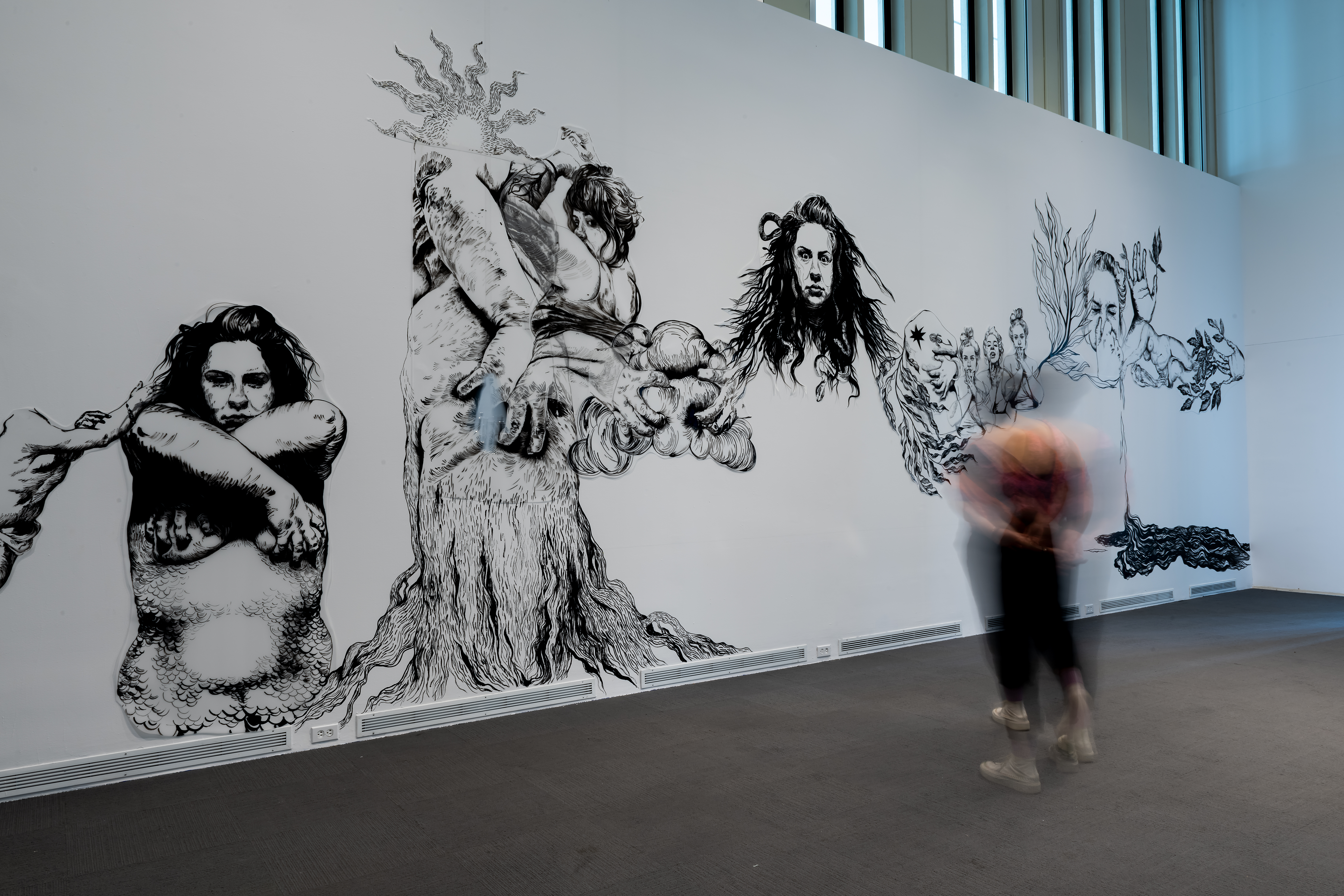 Works by: Em Rooney, Kianja Strobert, Grace Rawden, Lauren Carly Shaw, Jenny Kemp, Carrie Schneider, Arnela Mahmutović, Jess Stapf, Zaria Forman, & Kim Tateo.